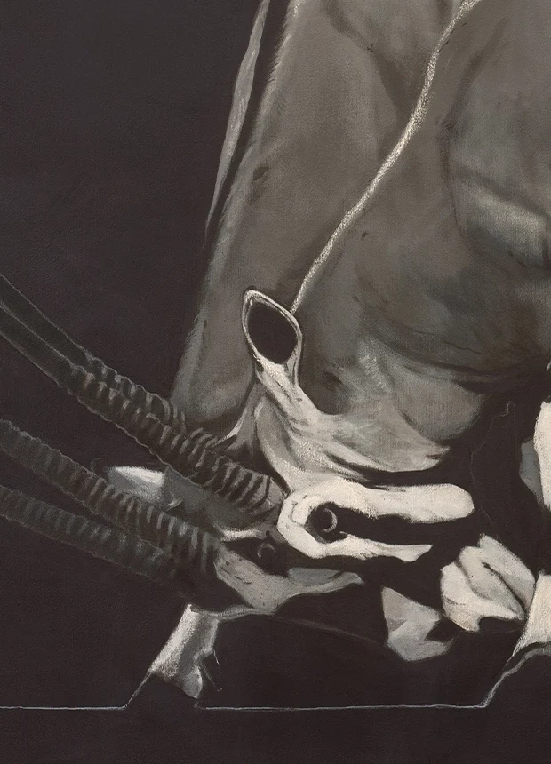 Nel filo rosso scorre l’energia della terra: una linea sottile che lega l’anima dell’elefante al cuore del mondo.