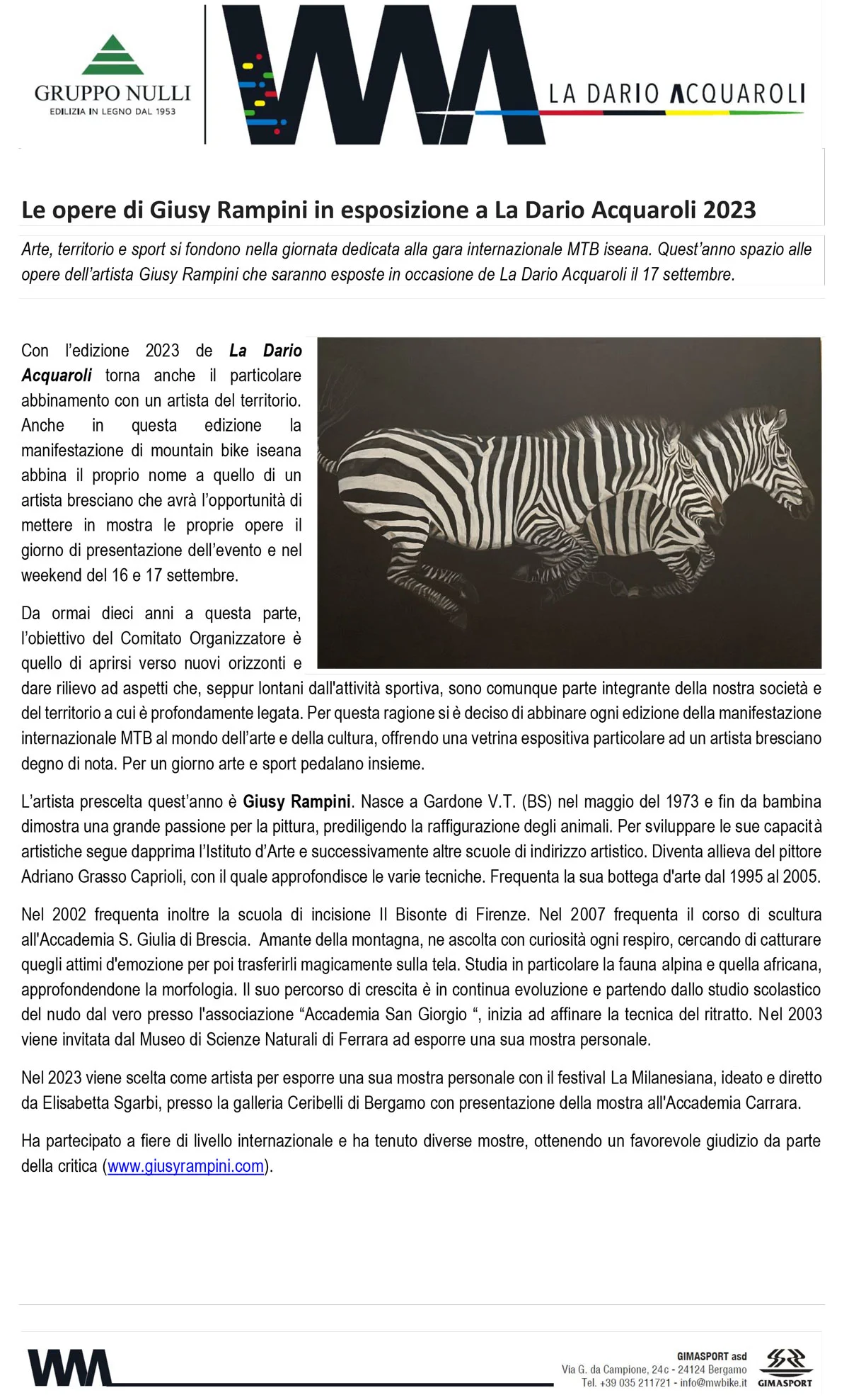 Arte, territorio e sport si fondono nella giornata dedicata alla gara internazionale MTB iseana. Quest’anno spazio alle opere dell’artista Giusy Rampini che saranno esposte in occasione de La Dario Acquaroli il 17 settembre.